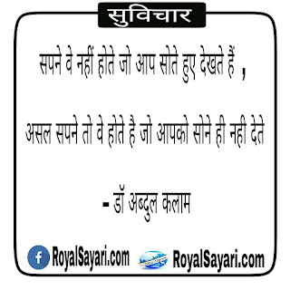 सपने वे नहीं होते जो आप सोते हुए देखते हैं , असल सपने तो वे होते है जो आपको सोने ही नही देते